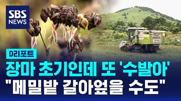 장마 초기인데도 이곳 밭에서만 20% 면적에서 수발아가 확인되면서 수확을 앞둔 메밀 농가마다 피해 확산이 우려되고 있습니다.