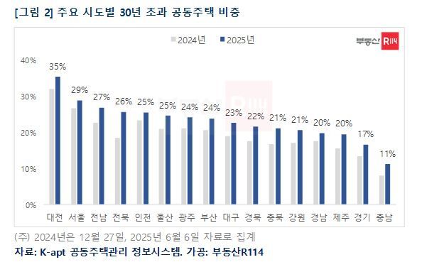 시도별 30년 초과 공동주택 비중. [부동산R114 제공]
