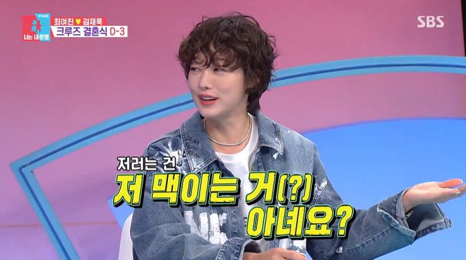 최여진은 "엄청 많이 바르고 와라. 덕지덕지"라며 "(결혼) 3일 전이다"라고 외치며 재촉했다. 김재욱은 "까만 게 좋다"면서도 결국 선크림을 바르러 갔다. 이 모습을 지켜보던 MC 이현이는 "아들 대하듯 한다"고 반응했다.