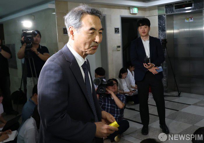 [서울=뉴스핌] 정일구 기자 = 윤석열 전 대통령 배우자 김건희 여사 관련 의혹을 수사할 민중기 특별검사가 17일 오전 서울 서초구 사무실 앞에서 취재진 질의응답을 마친 뒤 나서고 있다. 2025.06.17 mironj19@newspim.com