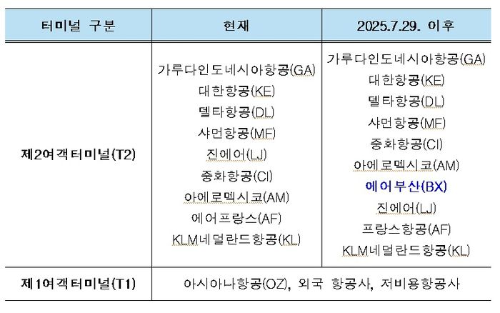 이번 항공사 재배치는 2개 터미널 간 여객 수송 분담률을 합리적으로 조정하기 위한 조치다.