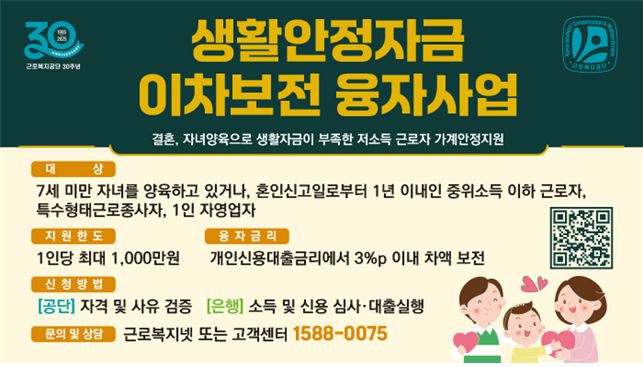 [파이낸셜뉴스] 근로복지공단은 저소득 취약계층의 경제적 부담 완화를 위해 지난 5월부터 대출 이자를 최대 3%까지 지원하는 생활안정자금 이차보전 융자사업을 시행하고 있다고 17일 밝혔다.