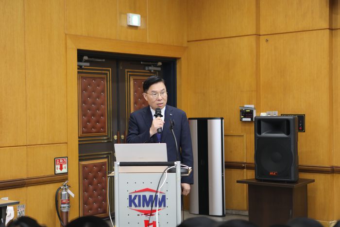 류석현 기계연 원장이 '바이오파운드리 핵심기기 및 장비 고도화 기술개발사업' 출범식에서 참석자들에게 환영 인사를 하고 있다. |