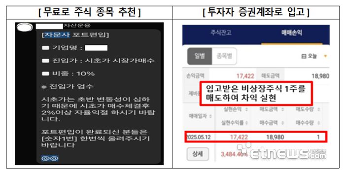 금감원에 따르면 불법업체는 소형 금융투자회사를 사칭하며 실체가 없는 비상장주식을 곧 상장이 임박한 것처럼 SNS, 인터넷 등 온라인 매체에 허위 정보를 배포하며 투자자에게 주식매수를 권유한다. 일반투자자들이 검증하기 어려운 신기술개발, 영업실적, 투자유치 등 과장된 사업내용과 몇 배 상장차익 가능 등 거짓 광고글로 현혹한 뒤 투자금을 편취하는 등의 사례가 빈번하게 발생 중이다.