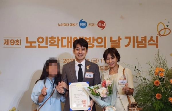 사진 속 최재원은 '제9회 노인학대 예방의 날' 기념식에서 대통령 표창장을 받은 모습이다. 이번 표창은 노인보호전문기관 종사자 교육 및 노인 학대 예방 홍보 캠페인 등에 적극 참여, 국민들에게 노인학대의 심각성을 알린 선행을 인정받은 것이다.