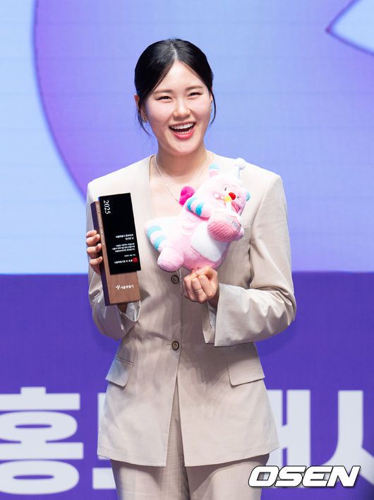 개그맨 엄지윤이 위촉패를 들고 기념촬영을 하고 있다. 2025.06.17 / ksl0919@osen.co.kr