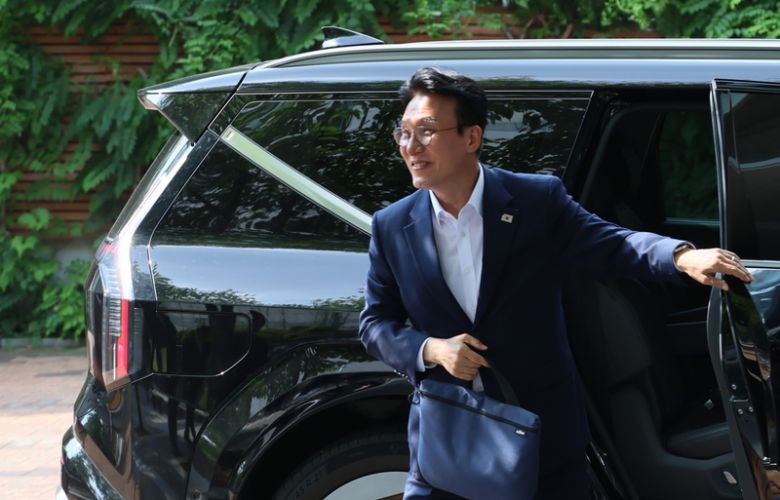 김민석 국무총리 후보자가 17일 서울 종로구 통의동 금융감독연수원에 마련된 청문회 준비단 사무실로 출근하기 위해 차에서 내리고 있다. / 사진 = 연합뉴스