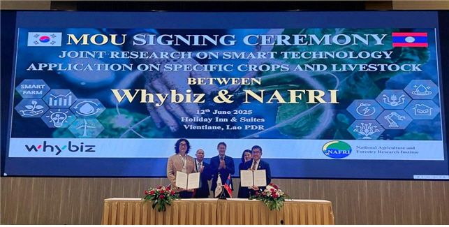 아시아투데이 최인규 기자 = 숭실대학교는 벤처중소기업센터 입주기업인 와이비즈가 라오스 농업산림연구청·라오스 국립대학교 농업학부와 스마트팜 기술 기반의 공동연구 업무협약을 체결했다고 17일 밝혔다.