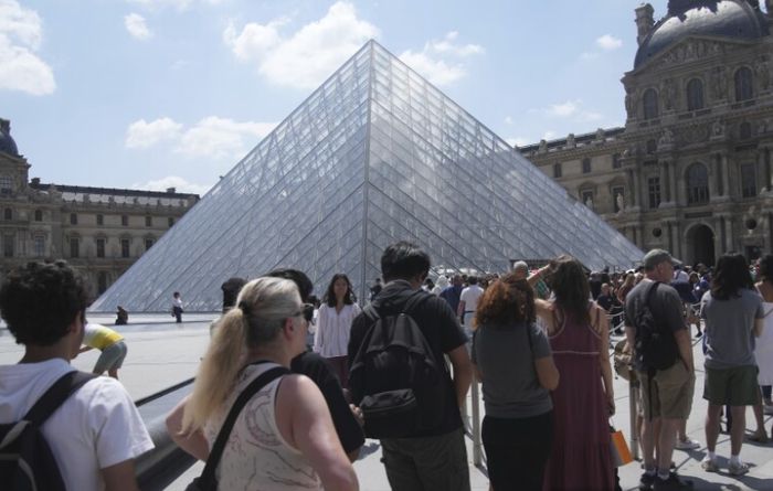 루브르 박물관 앞에 긴 대기줄이 늘어서 있다. [사진 = AP]