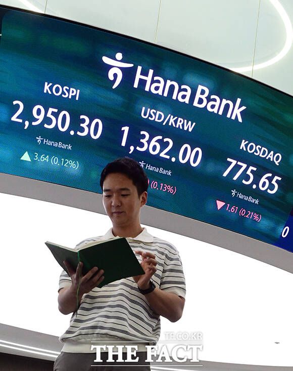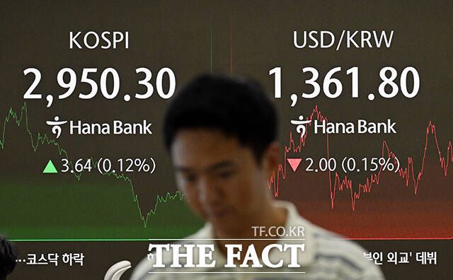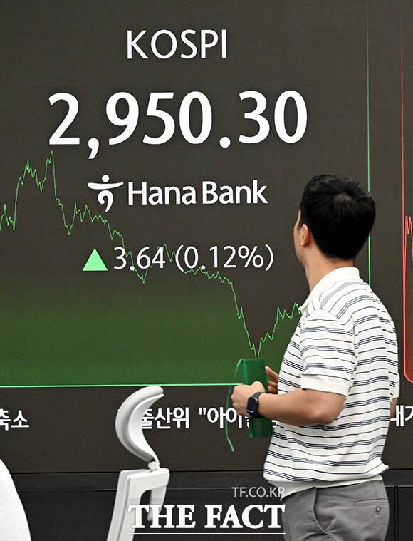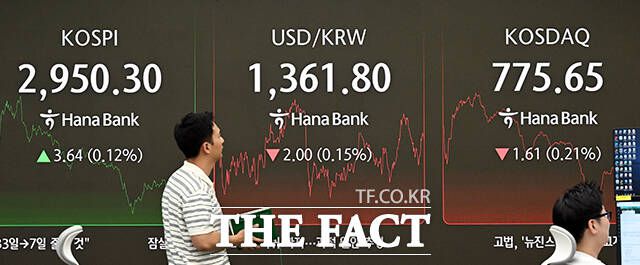 [더팩트ㅣ임영무 기자] 장 초반 2998 포인트까지 상승한 코스피가 2950.30에 거래를 마친 17일 오후 서울 중구 하나은행 딜링룸 모니터에 코스피 지수가 표시되고 있다.