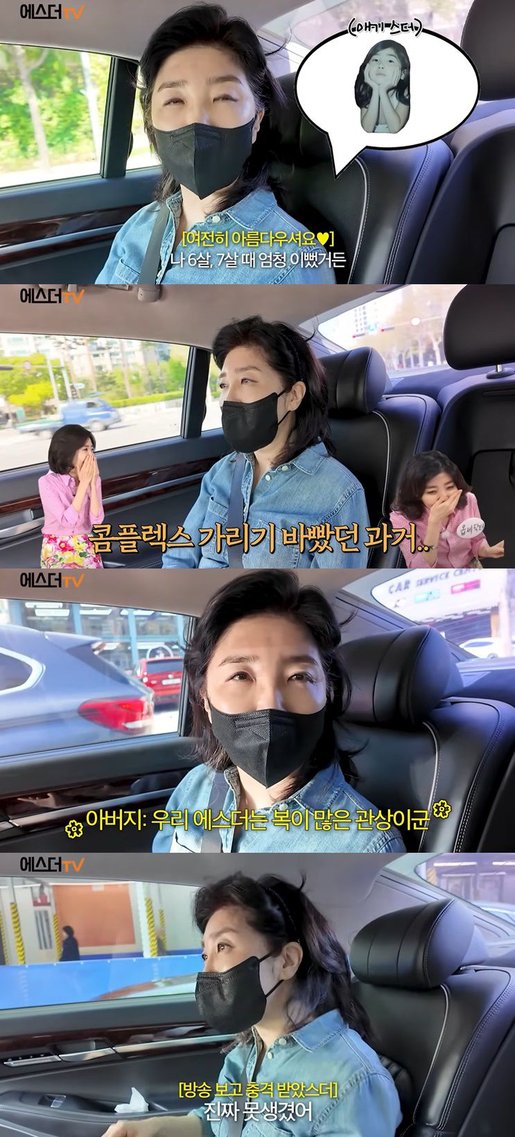 중학교 시절에 있었던 일화도 공개했다. 그는 "국토지리 선생님이 친정 아버지한테 치아 교정을 해주면 어떻겠냐고 편지를 써주셨다. 그 편지를 받은 우리 아버지가 안 된다고 했다. 둥근 얼굴에 튀어나온 입이 복이 많은 관상이라고 하셨다"며 당시의 아쉬움을 전했다.