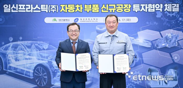 일신프라스틱(대표 전병규)이 대구국가산업단지에 309억원을 투입해 플라스틱 소재 기반 자동차용 부품을 생산할 수 있는 신규 공장을 건립한다. 이 회사는 17일 대구시와 자동차부품 신규공장 건립을 위한 투자협약을 체결했다.