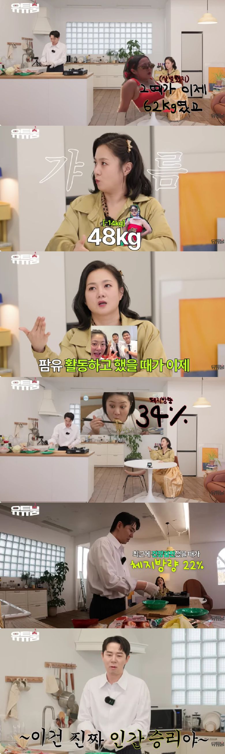 이어 그는 "팜유 활동할 당시 전현무, 이장우보다 체지방량이 많았다. 당시 체지방률이 34%로 몸의 3분의 1이 지방이었다"며 "최근 건강검진 결과 체지방률이 22%로 줄었다"고 덧붙였다.