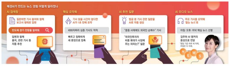 김명수 매일경제 이사 겸 매경AX 대표는 "단순 정보 제공을 넘어 독자의 기사 소비 경험을 확장시키는 '지식 탐색형 저널리즘'을 실현하려는 시도"라고 설명했다. 매경AX는 매경미디어그룹의 디지털·AI 서비스를 제공하던 매경닷컴의 새 회사명이다.