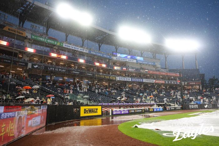 경기 재개까지 큰 문제가 없었다. 20분 만에 물이 다 빠졌기 때문이다. 대전 한화생명 볼파크 배수 시설의 진가가 발휘된 셈이다.