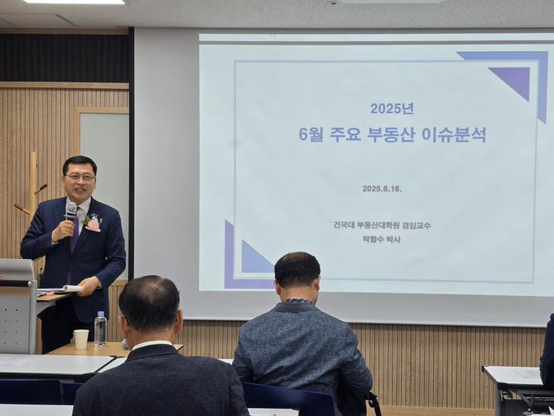 박합수 한국부동산전문가클럽 공동회장(건국대 부동산대학원 겸임교수)이 지난 16일 오후 '주요 부동산 이슈분석'을 주제로 강의를 하고 있다./부동산전문가클럽 제공