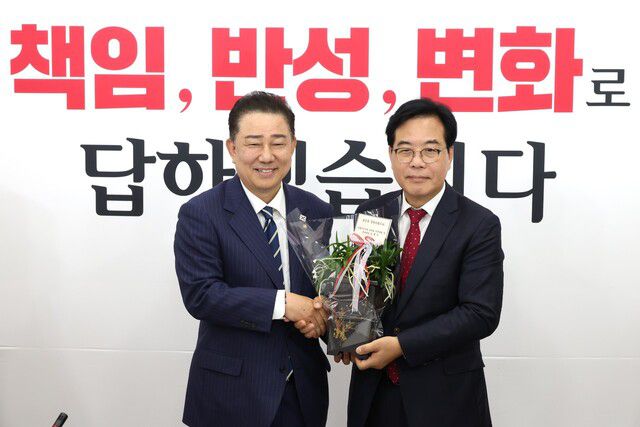 김병기 더불어민주당 원내대표는 이날 오후 송언석 국민의힘 원내대표를 예방했다. 지난 13일 먼저 선출된 김 원내대표가 전날 당선된 송 원내대표에게 ‘당선을 축하드립니다’라고 적힌 난을 건네며 축하의 뜻을 전했다. 두 사람은 “신중하고 합리적이라는 평가를 받아오고 있는 분”(송언석), “국정 운영의 현실과 책임을 누구보다 잘 이해할 것”(김병기)이라고 서로에게 덕담을 건네며 화기애애한 분위기를 이어갔다. 이어진 비공개 회담에서 두 사람은 “원내대표 회동을 정례화”하기로 합의하기도 했다.
