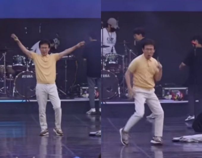 방송인 임성훈이 모교인 연세대학교 축제 무대에서 응원단장의 면모를 뽐낸 모습이 온라인에서 화제다.