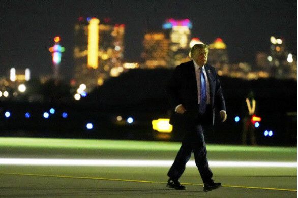 도널드 트럼프 미국 대통령이 16일 캐나다 캐내내스키스에서 열린 주요 7개국(G7) 정상회의를 이란-이스라엘 전쟁 때문에 중단하고 백악관으로 복귀하기 위해 전용기로 걸어가고 있다. AP 연합뉴스 |