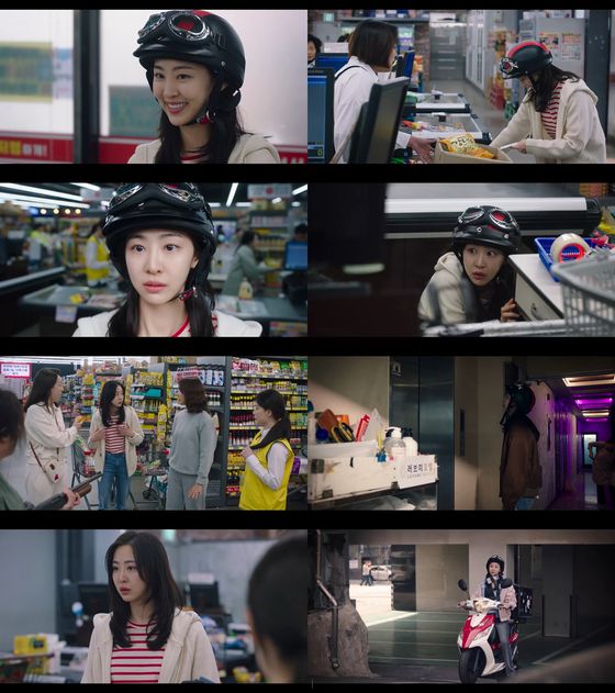 배달 라이더 복장을 한 채 광선주공 마트 안으로 들어서며 첫 등장했다. 능숙한 손놀림으로 박스를 척척 옮기고 점원과의 짧은 대화에서도 특유의 친근감과 여유를 드러냈다. 다음 배달에 나서려는 찰나 자신의 앞으로 총을 겨눈 김근순(최양희)을 만나 얼어붙었다. 그는 마트로 다시 들어가라는 김금순의 사인에 천천히 뒷걸음질 치며 들어가 일촉즉발의 긴장감을 자아냈다.