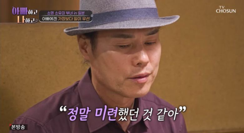 이날 소명은 딸 소유미와 저녁을 먹으며 "아빠가 어떻게 보면 완전 시골에서 올라와서 대한민국에서 어느 정도 알아주는 가수가 됐잖아. 그게 옆도 안 봤어. 앞만 보고 달렸던 것 같다. 정말 미련했던 것 같다"라고 속마음을 털어놨다.