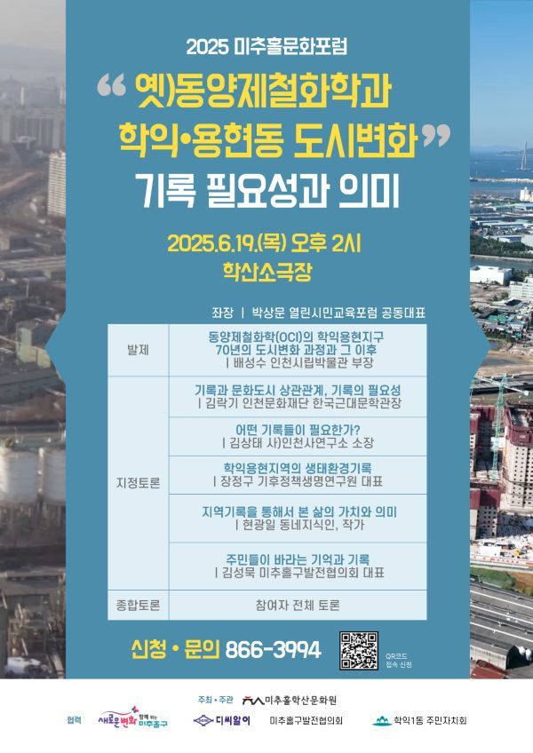 이번 포럼은 염전에서 산업지대와 주거단지로 이어진 학익ㆍ용현 지역의 도시 변천사를 돌아보며, 그 과정을 시민과 함께 기록하고 변화의 가치를 나누는 자리가 될 예정이다.