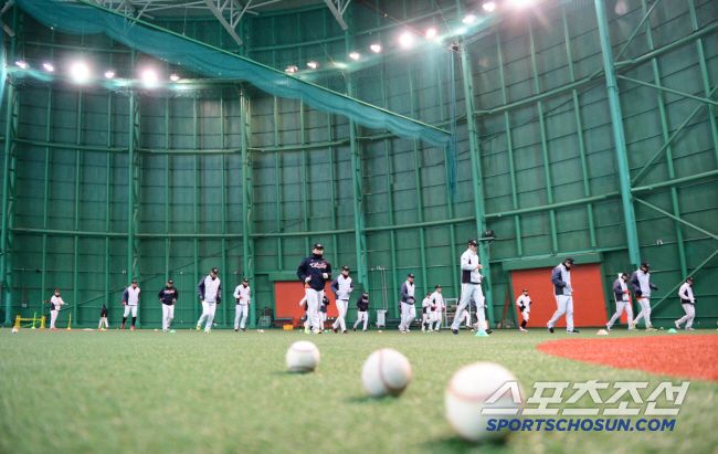 서산 2군 훈련장에서 몸을 만들어 전훈에 합류할 예정이다. 실내연습장에서 훈련에 임하고 있는 한화 선수들. 서산=송정헌 기자 songs@sportschosun.com