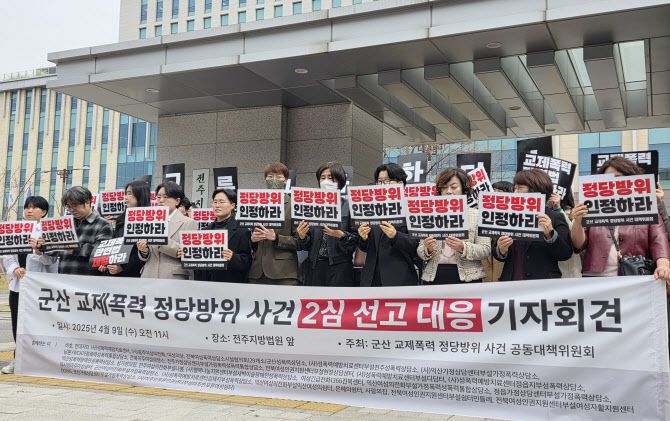 전주지법 앞에서 여성단체 회원 등이 현주건조물방화치사 혐의로 기소된 40대 여성 피고인에 대한 정당방위를 인정하라고 요구하고 있다. (사진=연합뉴스) |