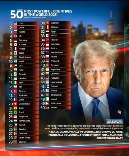 미국 시사 매체 '유에스 뉴스 앤드 월드 리포트'(이하 US뉴스)의 '세계에서 가장 강력한 국가들'(Most Powerful Countries)' 순위는 국가에 대한 글로벌 인식을 반영한 설문 기반 평가지표로, 지도자 이미지나 동맹 관계 등 대외 이미지 중심의 소프트 파워 요소가 강하게 반영된다.
