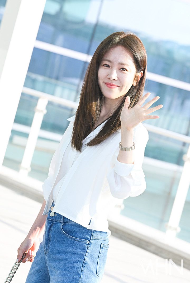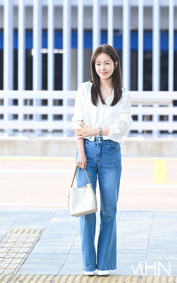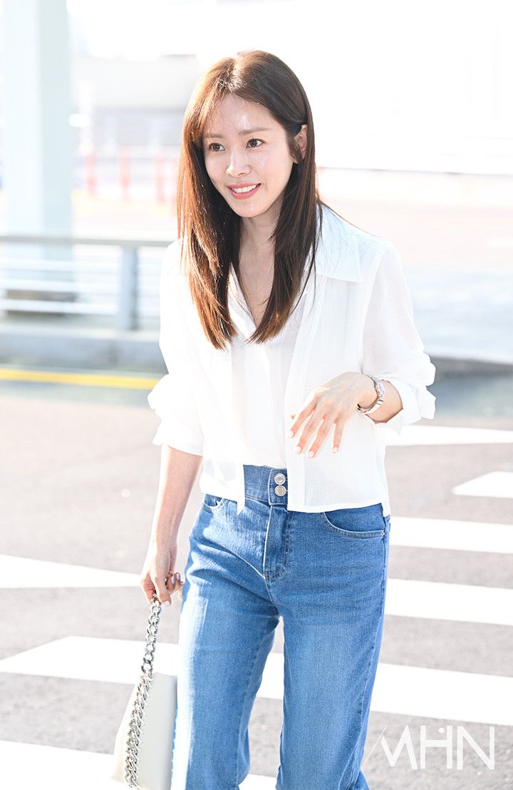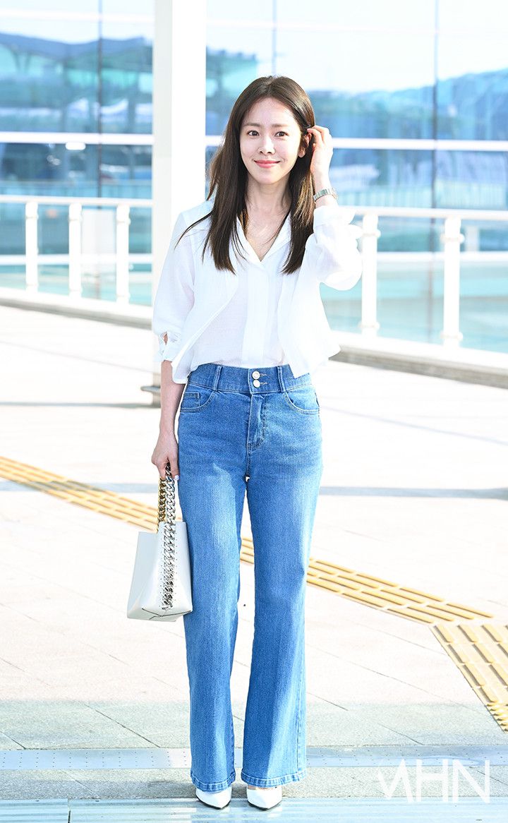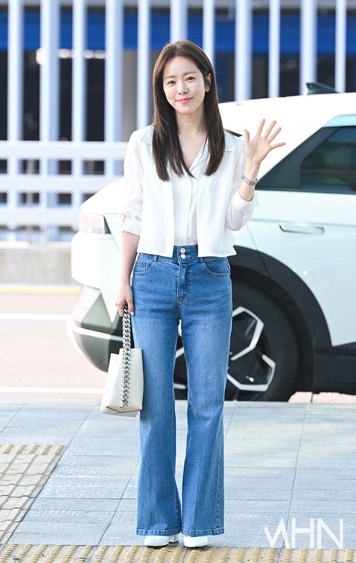 이날 한지민은 밑단이 살짝 퍼지는 부츠컷 데님과 화이트 블라우스와 화이트 숏 재킷을 매치한 세련된 여름 룩을 선보였다. 여기에 화이트 힐, 체인 백을 매치해 여성스럽고 세련된 매력을 더한 공항 패션을 완성시켰다.
