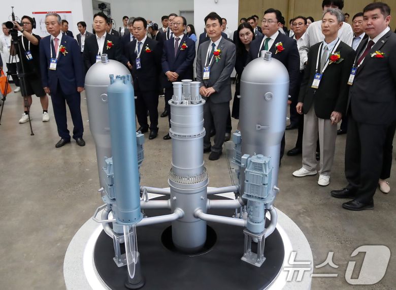11일 대구 북구 엑스코(EXCO)에서 개막한 '2025 대한민국 전기산업 엑스포'를 찾은 내빈들이 두산에너빌리티 부스에 전시된 원자로냉각재계통(Reactor Coolant System) 모형을 살펴보며 관계자 설명을 듣고 있다. 2025.6.11/뉴스1 ⓒ News1 공정식 기자 |