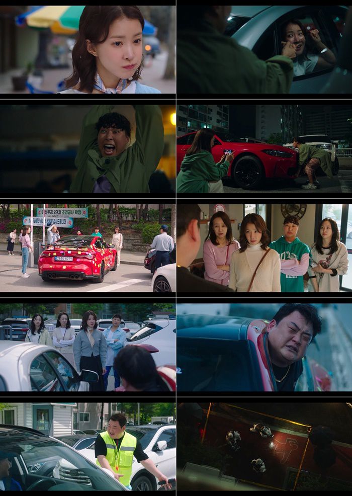 결정적인 사건은 늦은 밤, 차 안에서 만취한 남편 승호(정상훈 분)의 신용카드를 찾던 미리에게 벌어졌다. 주차빌런 일당의 보복성 주차로 인해 차에 갇히게 된 미리는 차 안에서 생리 현상을 해결해야 하는 최악의 상황에 처하고, 끝내 사과하지 않는 주차빌런에게 폭발하고 말았다.