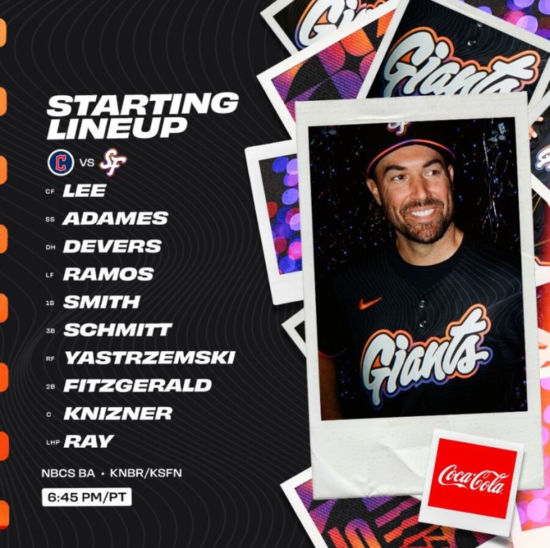 샌프란시스코는 18일(한국시간) 미국 캘리포니아주 샌프란시스코 오라클파크에서 열리는 2025 메이저리그 클리블랜드 가디언스와 경기에 3번 지명타자로 이름을 올렸다.