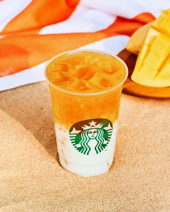 '스타벅스 망고 라떼'는 여름 대표 과일인 노란 망고 과육과 흰 우유가 층을 이뤄 휴양지를 연상시키는 비주얼이 돋보이는 음료다. 여름 시즌을 맞아 한정 기간 선보인다. 남녀노소 누구나 즐길 수 있는 논카페인 음료로 달콤한 망고 다이스가 들어 있다.