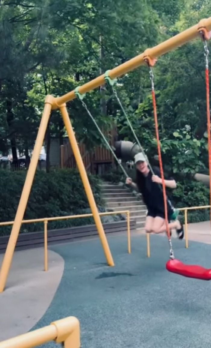 공개된 영상 속 손예진은 동네 놀이터에서 평범한 일상을 보내고 있는 모습을 담았다. 그는 블랙 티셔츠와 팬츠, 샌들로 '집 앞 마실룩'을 완성, 신나게 그네를 타는 모습을 올렸고 또 다른 영상에서는 반려 '누에'를 공개하기도 했다.