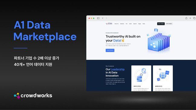 크라우드웍스는 AI 학습용 데이터를 거래할 수 있는 플랫폼 'A1 데이터 마켓플레이스'를 운영 중이다. 회사에 따르면 플랫폼의 파트너 기업 수는 2배 이상 늘었으며, 알바니아어와 아랍어 등 희소 언어를 포함한 40개 이상의 언어 데이터를 제공하고 있다. 현재 한국을 포함해 미국, 아일랜드, 포르투갈, 네덜란드, 일본, 스페인, 중국, 싱가포르 등 14개국에서 트래픽이 유입되고 있다고 설명했다.
