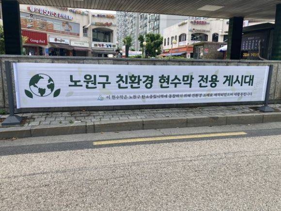 서울 노원구가 환경부 인증 ‘친환경 현수막’을 도입하고 ‘친환경 현수막 전용게시대’를 운영한다고 18일 밝혔다. 서울시 자치구로서는 처음이다.