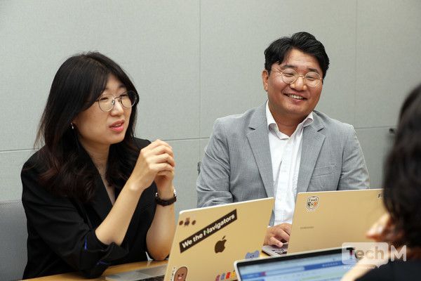 지난 13일 네이버클라우드 강남오피스에서 MAIU 기획 총괄 김승진 리더(오른쪽)와 실무 담당 서지원 매니저가 '테크M'과 인터뷰하고 있다. /사진=임경호 기자