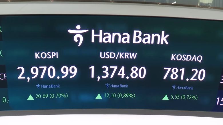 코스피 상승 전환해 2,970선 회복…환율 급등