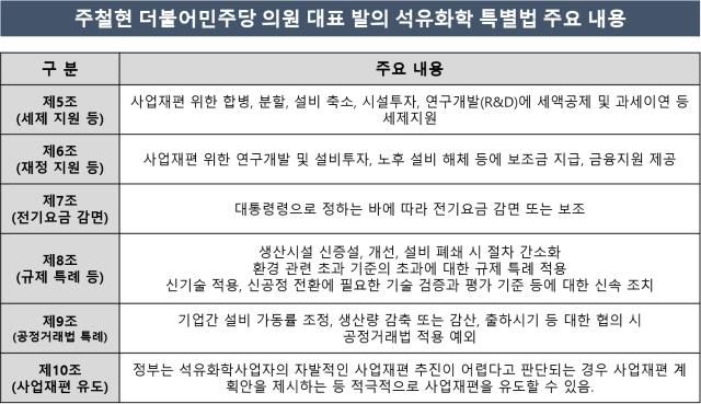 법안은 단순히 위기 대응 차원을 넘어서, 친환경 고부가가치 화학소재(스페셜티) 중심의 산업구조 전환을 위한 R&D, 인력양성, 지역 고용 안정 등도 포함했다. 이는 전통 석유화학에서 미래 화학소재 중심으로 산업 생태계를 재편하려는 장기적 전략이다.