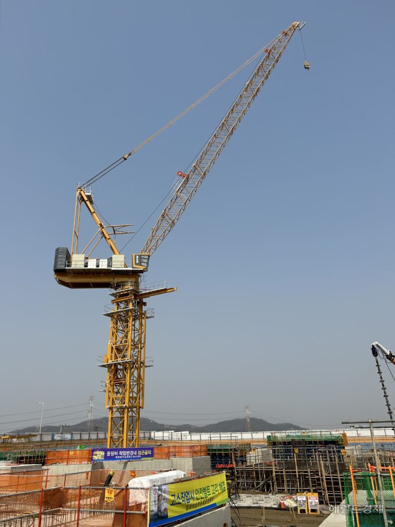 18일 경기 의정부시 금오동 푸르지오 클라시엘 시공 현장에서 활용되고 있는 XCMG의 크레인 모습 [사진=XCMG 제공] |