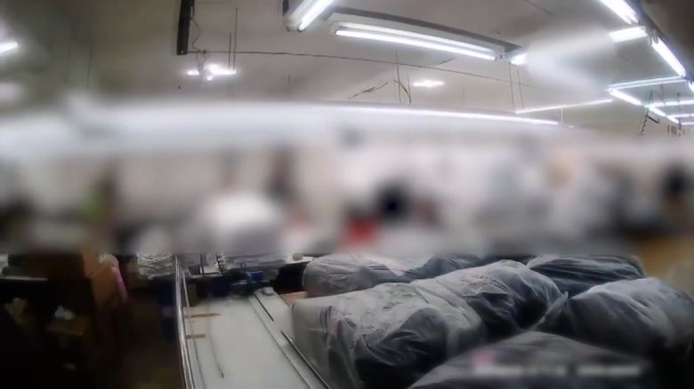 경찰이 빌라 건물 안으로 들어서고, 3층으로 올라가니 의류 제조 시설이 나옵니다.