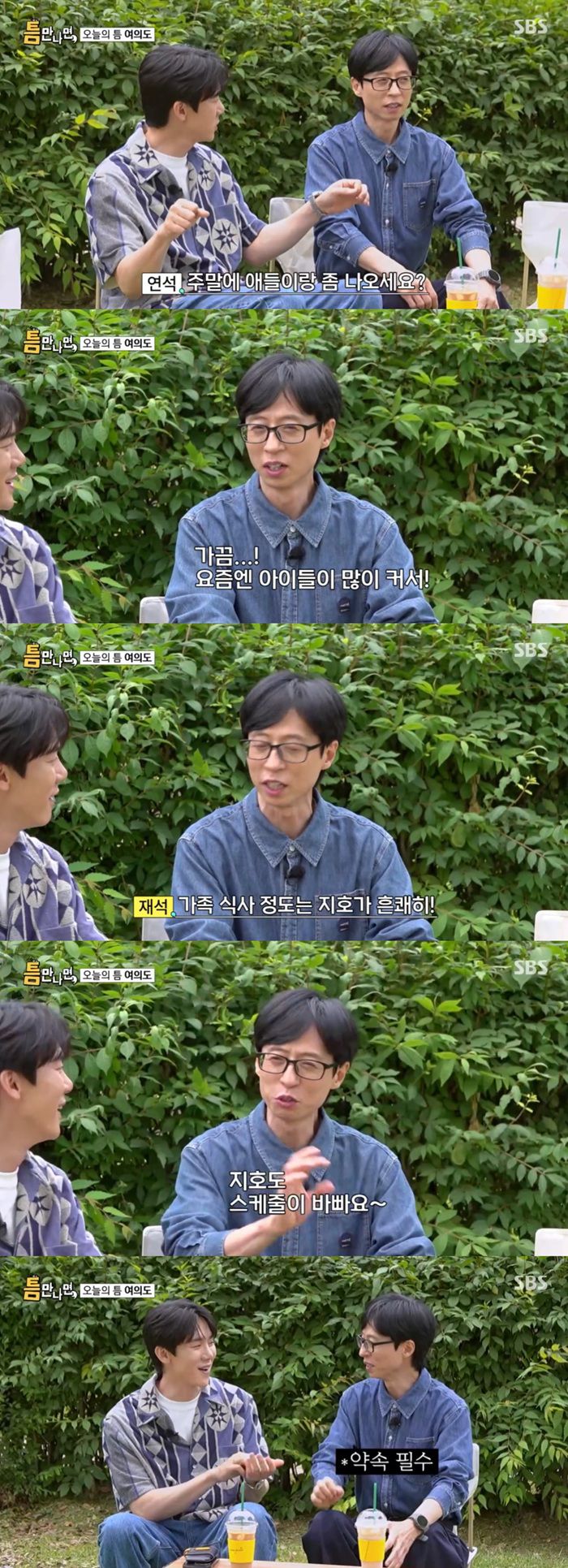 이에 유재석은 "요즘은 아이들이 많이 컸다. 지호는 지호의 삶이 있다. 가끔 가족 식사 정도는 지호가 흔쾌히 참석을 한다"고 아들의 근황을 전했다.
