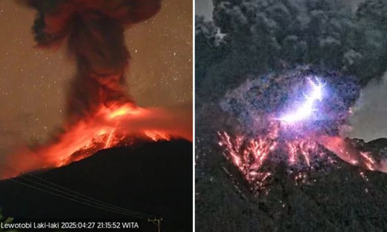 지난 4월 27일·5월 19일(현지시간) 인도네시아 소순다열도 인근 동누사트가라주(NTT) 동부플로레스군에 위치한 르워토비 라키라키 화산이 분화하는 모습. 세계일보 자료사진