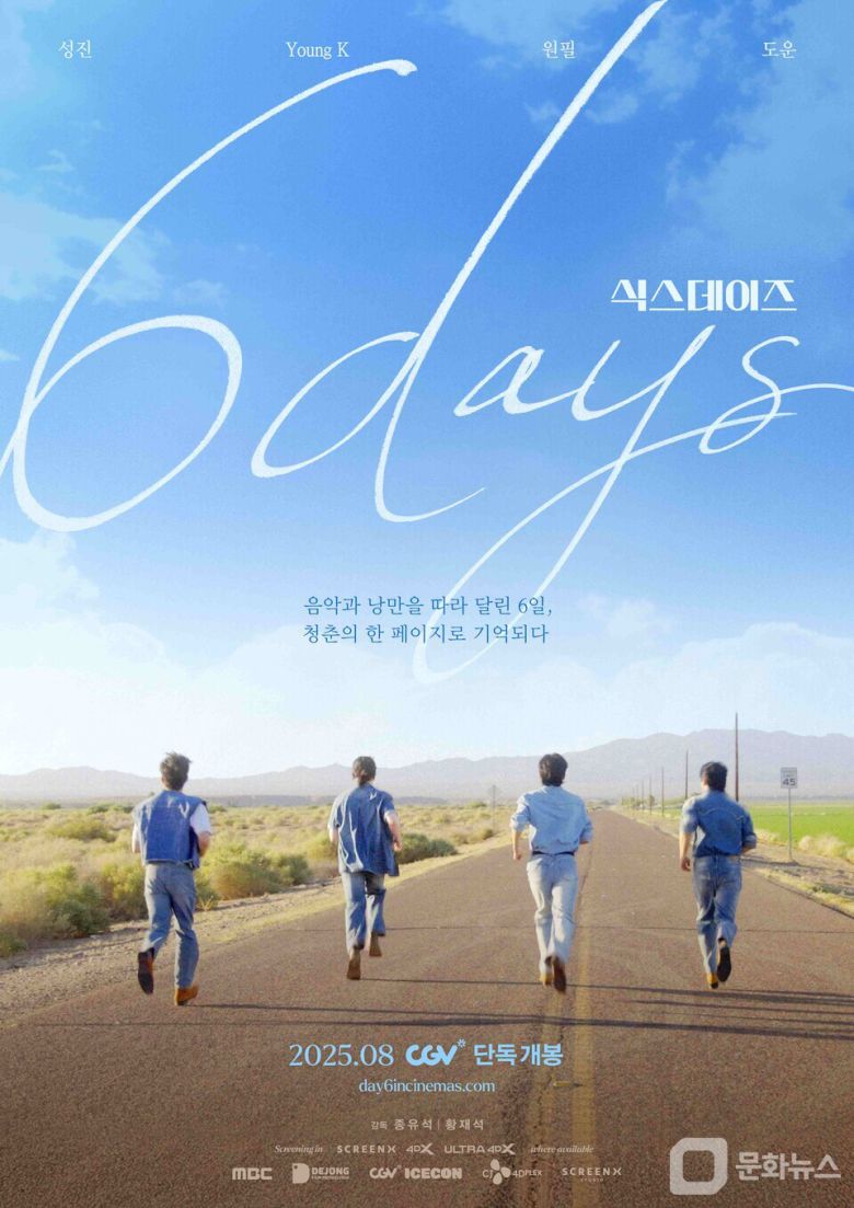 (문화뉴스 이미숙 기자) 밴드 DAY6(데이식스)의 첫 스크린 도전작, 뮤직 로드무비 <6DAYS>가 오는 8월 국내 CGV 단독 개봉을 시작으로 글로벌 개봉한다.