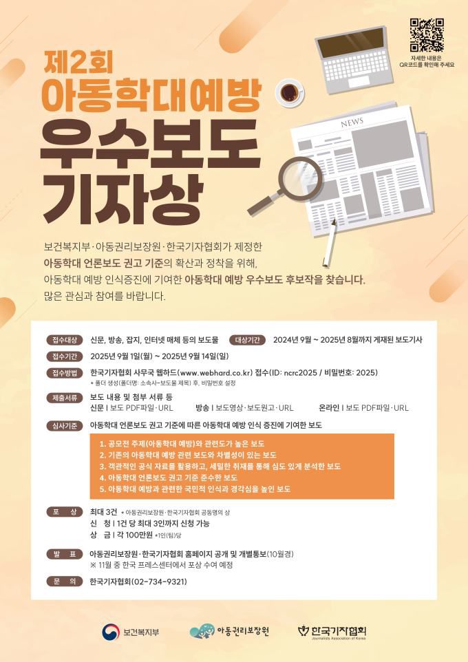 제 2회 아동학대예방 우수보도 기자상 포스터 [사진=아동권리보장원]