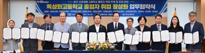경북도는 18일 도내 7개 보건·간호계열 특성화고등학교, 3개 지방의료원과 함께 고교 졸업자 채용 활성화를 위한 업무협약을 맺었다.