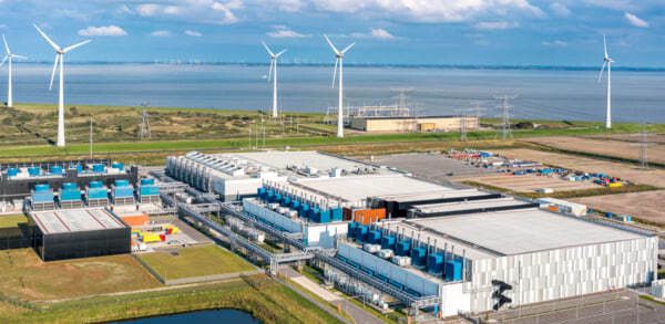 전 세계 데이터센터들이 알이(RE)100 달성을 위한 재생에너지 확보 경쟁에 나섰다. 사진은 풍력단지 옆에 건설된 구글 데이터 센터 전경. 구글 누리집 갈무리 |