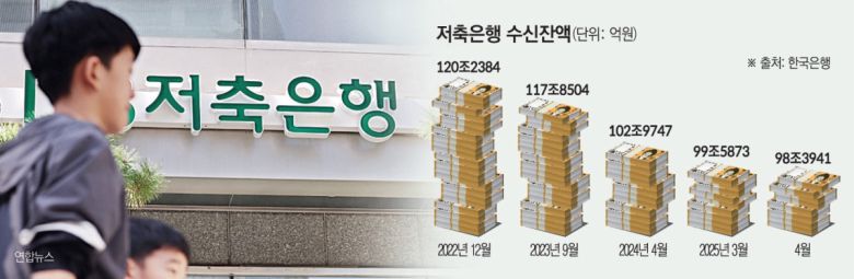 저축은행의 수신 잔액이 6개월 연속 줄어들며 두 달 연속 100조 원 아래에 머물렀다. 과거 고금리 특판으로 자금을 끌어모았던 2022년 말과 비교하면 20조 원 넘게 감소했다. 프로젝트 파이낸싱(PF) 부실 우려로 공격적인 대출 영업이 어려워진 가운데 예금금리 경쟁력마저 떨어지면서 소비자 이탈이 이어지고 있다는 분석이 나온다.