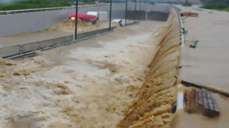 트럭이 누런 흙탕물을 가르며 지하차도를 겨우 빠져나옵니다.